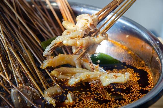 第一次在冬天吃到加热的钵钵鸡,比冷锅的入味更加快,种草去了骨的鸭掌和鸡爪,嘴巴的满足度堪比剥了壳的虾,筋与皮都入了味口感十足的Q弹,再来一口油汤浸过的牛舌牛肚和猪皮,一口Q弹一口软绵。 而且为了让食客都能吃到手工 剥的鸡爪,小哥哥小姐姐手指甲都是伤痕累累,必须点个赞。