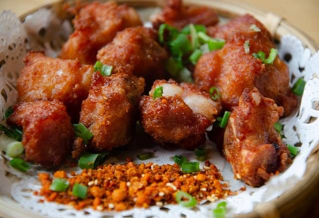 脆香排骨,蒜香味的排骨,一上桌就特别扯眼,橙红鲜亮的排骨,选用精制的小排,除了油脂的酥香还有排骨骨头和肉质的焦脆,再配上辣椒面简直完美。