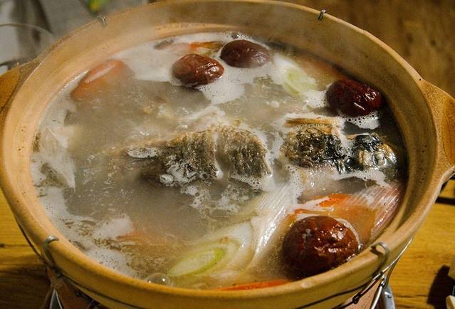 店里的食材都是很新鲜的,关键是也很干净,对食客来说,吃的放心才是最重要的。大颗红枣漂浮在汤上面,一条鲫鱼清晰可见,第一次见到羊肉汤里和鲫鱼搭配,问了店里的阿姨为什么会想到用鲫鱼和羊肉做汤锅,阿姨说鱼和羊组合在一起不就是一个“鲜”字吗,瞬间恍然大悟,这个鱼羊鲜汤锅不仅味道鲜美,而且又把中国的博大精深的文字完美呈现。