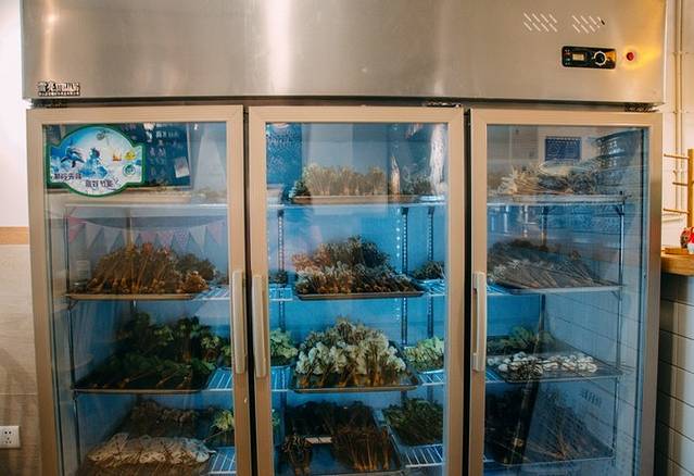 钵钵鸡是7毛钱一串,菜品是自选要吃什么自己去取,里面有一个冷藏柜,煮制好的串串整齐的摆放在冰柜里,自己想吃什么随意挑选,而且里面的菜看着干净卫生,就喜欢这样的小店串串也不贵,还有很多特色小吃和饮料啤酒可供选择。
