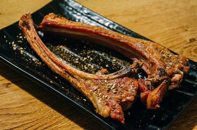 烤羊排,特色之一,取自专门从新疆空运过来的小绵羊的羊排,将各种调料和香料调好均匀涂抹在新鲜的肉块上,放在馕坑壁边,盖上锅盖焖烤适当时间,出锅后香味扑鼻,没有任何膻味儿外脆里嫩,美味可口,靠近肋骨的地方尤其焦脆。