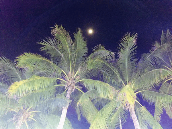 圆圆的月亮在椰子树的掩映下显得格外皎洁,时而抬头看看月亮,会让人心如止水,在那一刻,仿佛自己忘了呼吸好像呼吸都会打断这一美好的景致