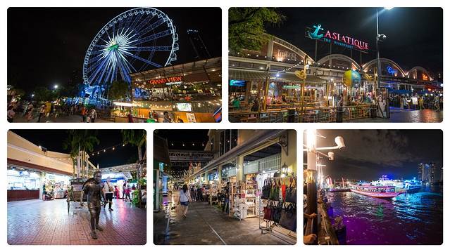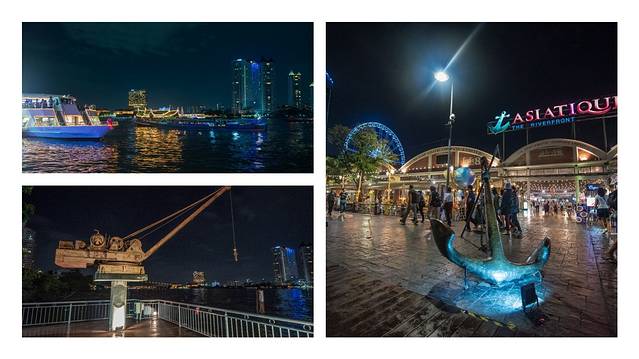 首先隆重介绍河畔区,如果你从BTS站乘坐免费的船来夜市(后面会介绍),那你下船所处的区域 就是河畔区了,在这里你能一览整个河畔夜市、摩天轮和湄南河夜景,码头旁边还有旧式的起重机,除此之外,还有各式各样的特色餐厅。如果你网上有预定,你还可以上游轮用餐,还有表演看哦。可惜的是我这次没能上去,不过我相信,那将会是一个非常棒的体验。在河畔区你可以吹着风在河边散步,也可以找家餐厅,点上一些东西,听着音乐,好生惬意,好想直接来个葛优瘫,咳咳…考虑到形象还是约束了自己。