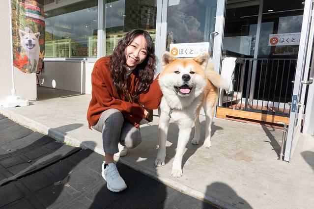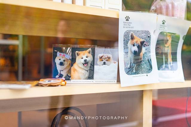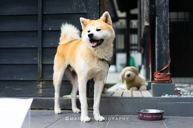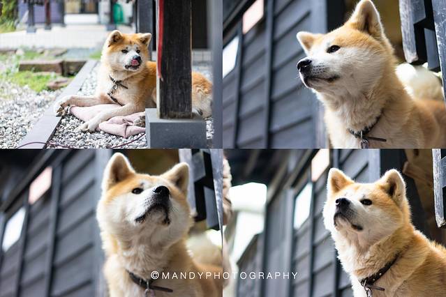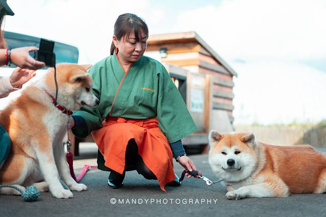 这里还有一个重头戏:秋田犬武家丸。它的主人是个年轻的 日本 女孩,非常热情好客,拿出了小零食让它配合我们拍照。平时武家丸也非常欢迎各国游客来找他玩,不过有一点:眼看手勿撸喔。