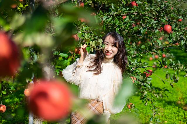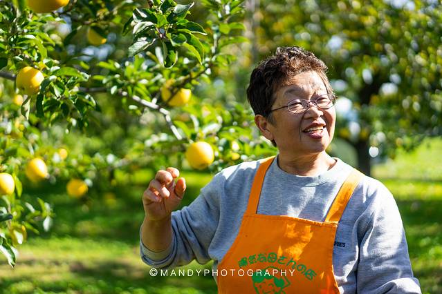 在这里你可以论斤买苹果,也可以交400日元进来苹果园自己摘两个。这位善良憨厚热情的阿姨会给你试吃不同的苹果,教你怎么识别苹果是否成熟、够不够甜,还会告诉你正确的摘苹果的手法。