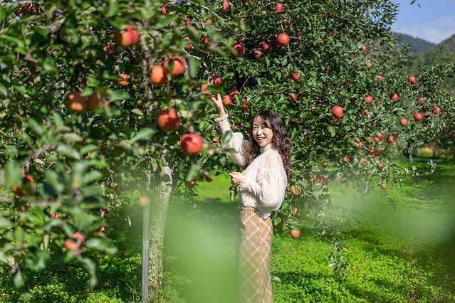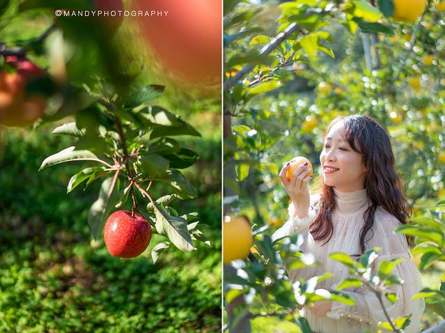 我们还去了一个叫“阳光元气的老母亲”的农家苹果园里摘苹果。和我想象中的区别很大,虽然也是在户外,却干净得一点没有“下地里”的感觉。