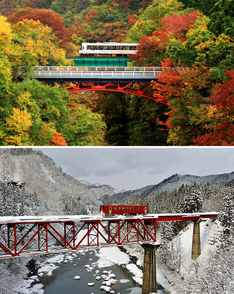我们从角馆上车、阿仁合站下车,大概一小时的车程,刚好能看到几段最美的风景。