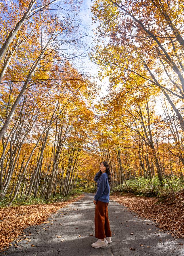 秋天在秋田自驾,是人生中最棒的体验之一了。路上两侧都是高高的树林,黄色的、红色的、绿色的不断在你眼前变换,还可以停下车来拍照。
