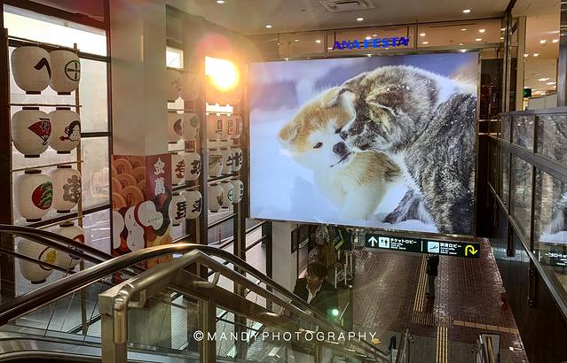 也是来了机场才看见,原来秋田犬还不止黄色,还有白色、赤色、黑色,不过觉得还是黄色最可爱~