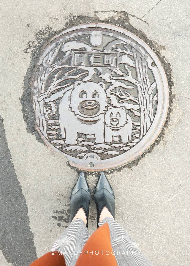 这里虽然有秋田犬,但也有很多黑熊。 日本 人真是个爱卖萌的民族,连水井盖都不放过。