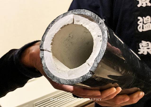 一进酒店就能闻到浓浓的硫磺味,还记得初中化学的童鞋就秒懂了,也就是臭鸡蛋的气味,但呆了不到半小时就完全习惯了,只要不是长时间呆在这里,住个几天是完全没问题的,不会对人体造成伤害。听说这里的温泉管道1个月就要全体换一次,因为硫磺温泉水流过的钙化痕迹常常让管道积下很厚的壁,减少了温泉水的运输流动。