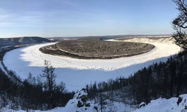 龙江第一弯:冬天的龙江第一弯,看不到蓝天白云绿树碧水,只能看到亮晶晶的水湾,一片圣洁的白色~