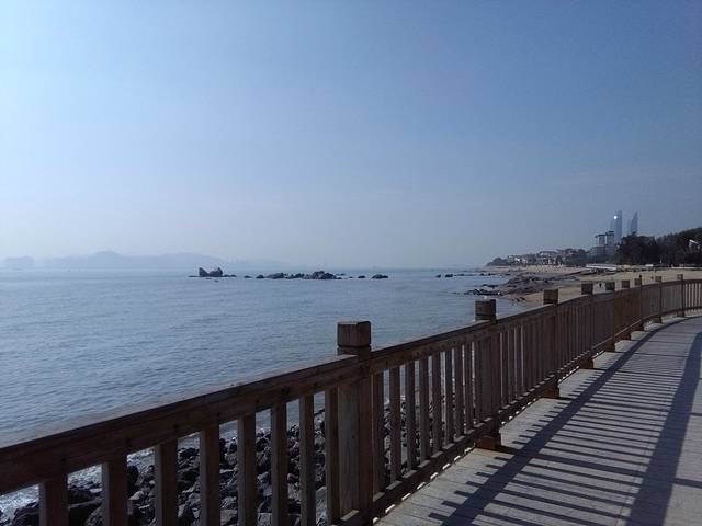 海边有很长的栈道,天不热的时候来吹吹海风,晒晒太阳,确实是不错的享受。