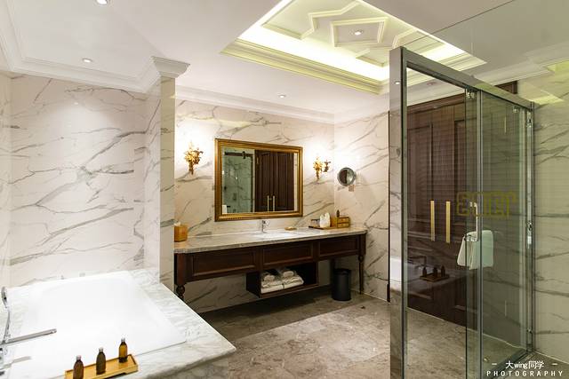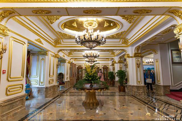步入大堂,就如同进入了金碧辉煌的宫殿里,黄与白的色调搭配得恰到好处,不俗套,不浮夸,而金色的墙壁上一张张金箔贴上去的,一共用了八万五千张,这样的高贵却没有一点架子,而热情的酒店服务更让你内心踏实,有一种宾至如归之感。