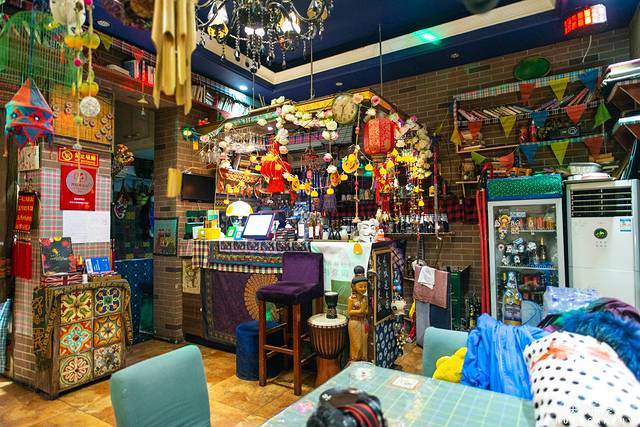 东北有啤酒,而中央大街却有小龙虾!位于中央大街西头道街33号,有一家专门吃小龙虾的网红餐厅,装修别具一格,进内后,你会发现这里就如藏宝阁一样,收集了来自五湖四海的好东西,五彩的经幡,夺目的中国结,怀旧的电视,可爱的布偶,甚至是鸟笼,这些元素虽然并不统一,但却成为小酒馆最美的点缀。