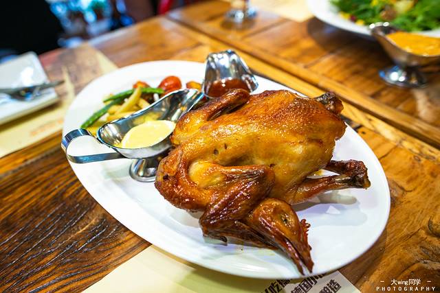 德式香草烤春鸡,火候恰到好处,喜欢外皮的香焦感,而里面的鸡肉却依旧嫩滑有味。
