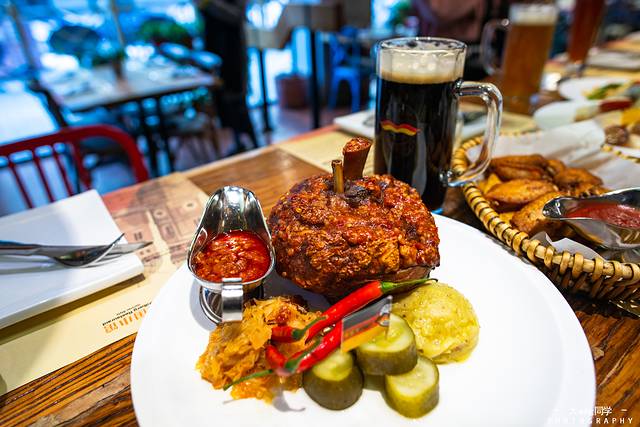 德式烤猪肘,是这家餐馆的招牌菜,酥脆的外皮包裹着嫩滑的猪肉,里面的精华和香汁都汇聚在一起,让人欲罢不能,我一个人吃了半份已经很满足了。