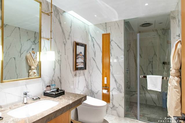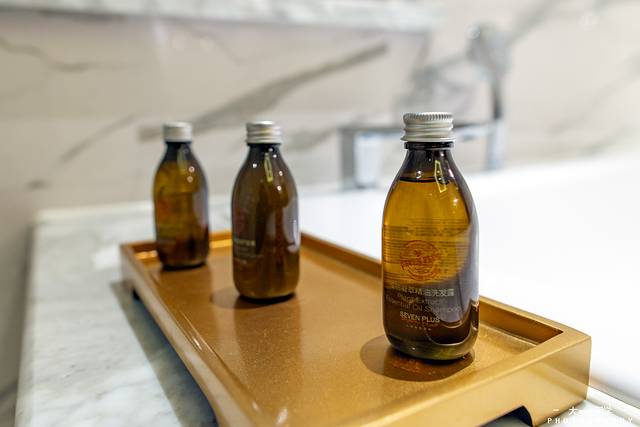 与大公馆一样,卫浴设备十分前卫,世界品牌杜拉维特洁具,汉斯格雅卫浴,全自动马桶,而洗护用品依然是英国植物精油系列SEVEN PLUS。