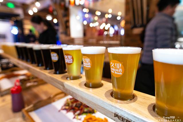 原木点缀的店面在耀眼的灯光下特别吸引眼球,“喝精酿啤酒,吃下酒小菜,在久里,就是喝!”多豪气的店标,这或许就是代表着东北人的胸怀吧!