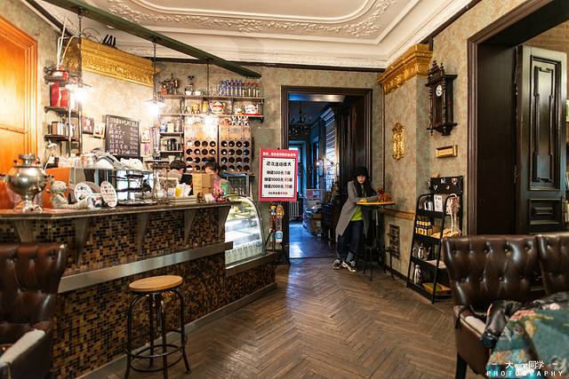 步入咖啡馆,看到墙壁上老挂钟的时间停止于1962年,用时间记录着时间,真的颇为有趣,而咖啡馆内里的装饰极具欧洲风情,甚至有一种古堡的神秘色彩。