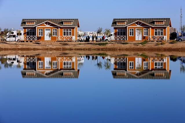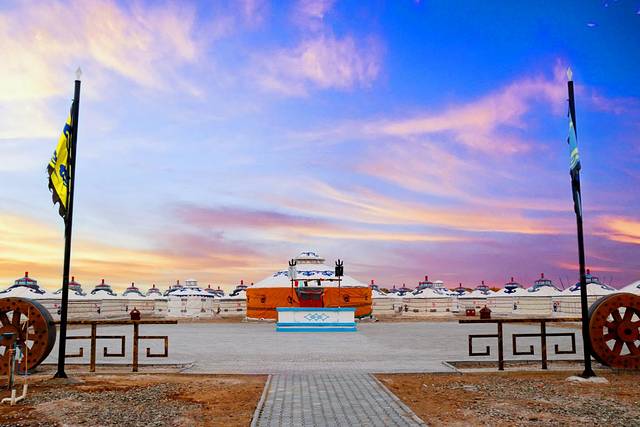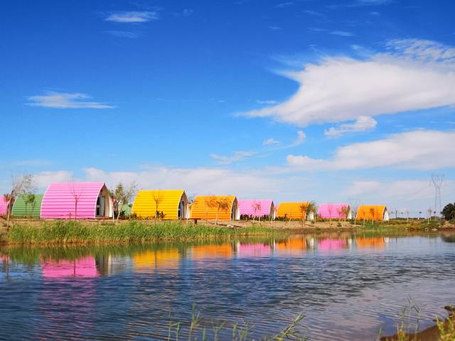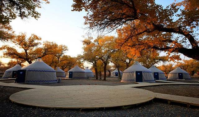 大漠胡杨林景区除了美如画的风景,还有很多适合娱乐的设施。像蒙古包、射箭、沙漠骆驼骑行、沙漠冲浪车,还有极具特色的水边贝壳屋,都是很值得一试试的特别体验。喜欢拍照的朋友一定不能错过古装旅拍和羊群、骆驼摆拍,毕竟将自己融入明信片般风景大片的机会可不是在哪里都有的。当夕阳西下,夜幕降临,再参加一场当地的篝火晚会,体验不一样的篝火狂欢。这里不仅有马头琴、呼麦、陶布秀尔等特色民族艺术的演出,还有现烤的全羊!在这样的燃到尖叫的夜晚,释放自我,融入属于这里的快乐。