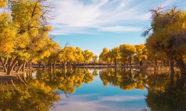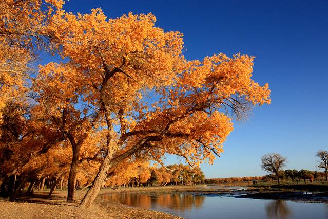 世界上的胡杨绝大部分都生长在中国,在内蒙古额济纳河的两岸,就分布着当今世界上仅存的原始胡杨林之一——大漠胡杨林。额济纳河与胡杨林早已相生相伴,走过千年。如果说哪里有足以惊艳世人的中国最美秋色,这里一定有姓名!和爱的人一起手牵手走在额济纳的秋天,在满目金黄浓郁多彩的画卷里,许下永远在一起的誓言,大概是我所能想到的最大的浪漫。