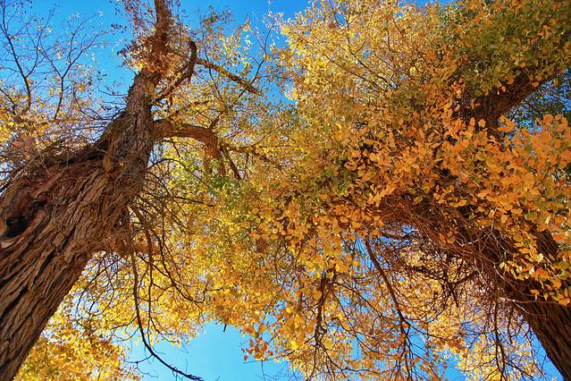 金秋十月,正是胡杨最美的季节。沙漠中的胡杨,据说活时千年不死,死后千年不倒,倒后千年不朽....就像是绝世英雄,默默在沙漠里扎根,默默在荒漠中坚守,年复一年,谱写出一世又一世的传奇。