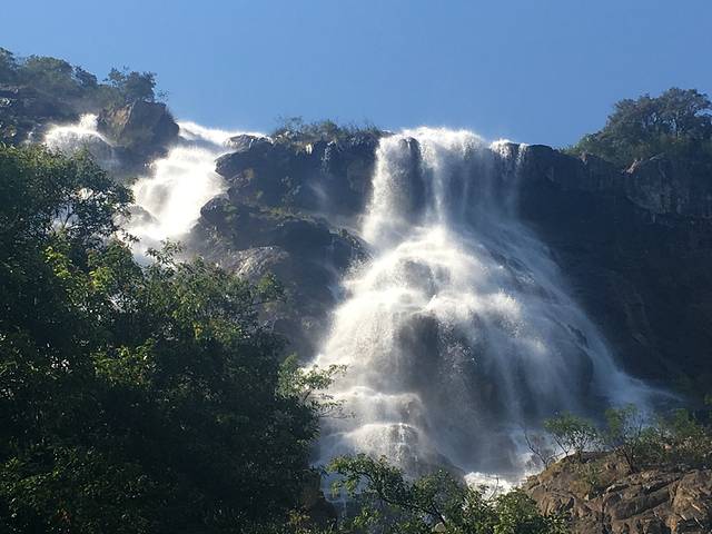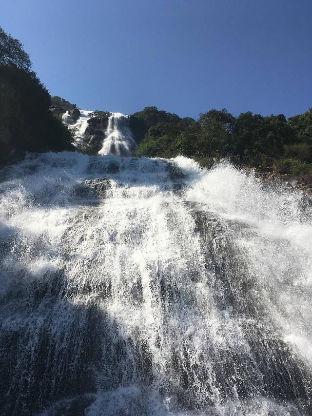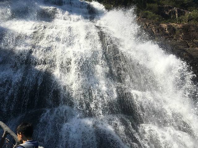零距离接触瀑布点—沐瀑台。从山顶飞驰而下的瀑布水花,沐浴身心。感受落差最大瀑布的壮美。说实话,4099级没有必要去,如果看到瀑布的源头,对白水寨的瀑布有点失落。还是建议游玩海船栈道路线。特别感谢我的小伙伴们,一直背着干粮上山,一直鼓励着我们爬上山顶。