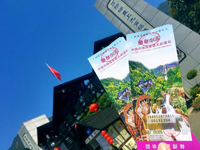 白水寨门票:60元/人,建议在网络上买相对便宜,我们就是在网络上提前购买,才36元/人,而且到现场就可以取票,不用排队买票而且又便宜。对了,国庆节假期白水寨的门票也便宜了十几块钱,车位另外加十块钱。