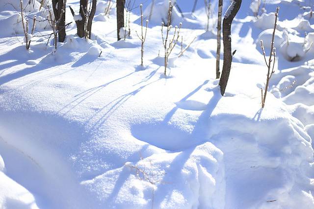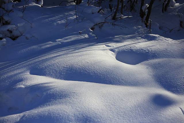 没有人走到的地方一直都是这样的积雪,特别好看。如果你像踩比较松软的雪,一定要小心一点,你根本不知道这个雪到底是有多厚啊。