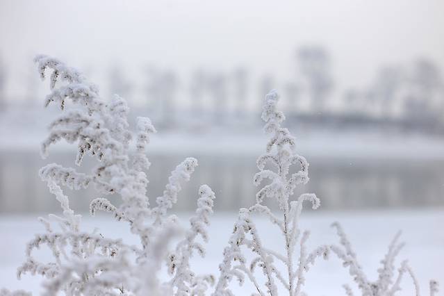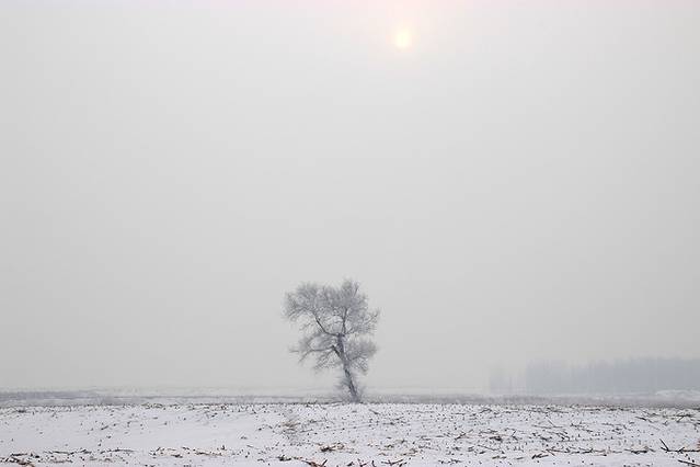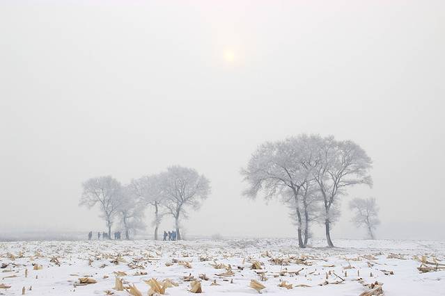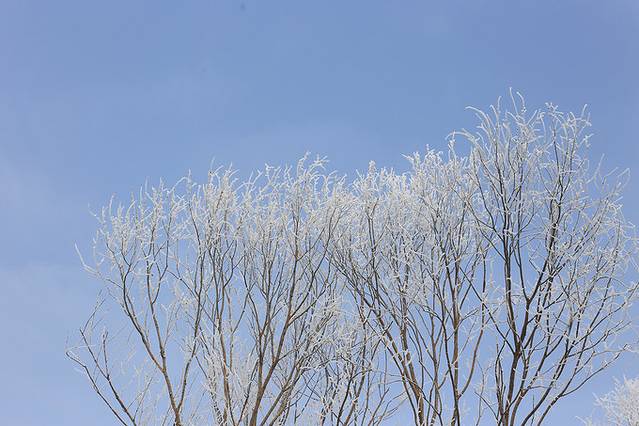 小时候我是想象过天堂的,那必须是地下是雪,空中黑白,天空是白色+蓝色的。雾凇岛从周围环境来看绝对适合。更难得的是,我们在这里真的看到了枝头上的雾凇,好多好多。有生之年第一次看到这种盛况,能不激动么。