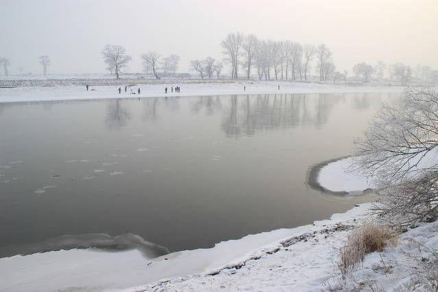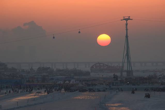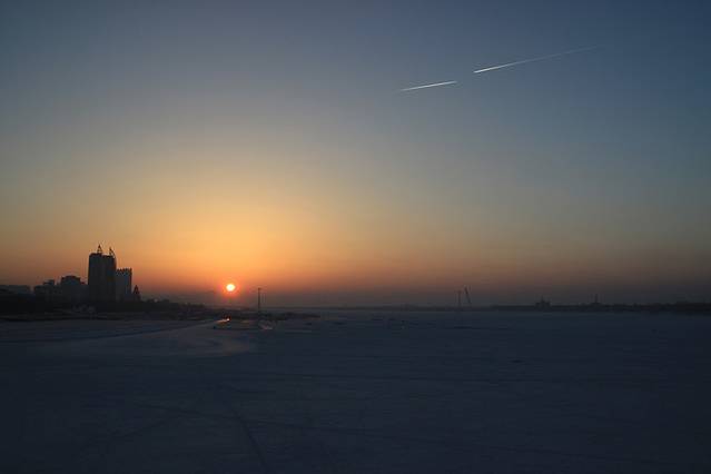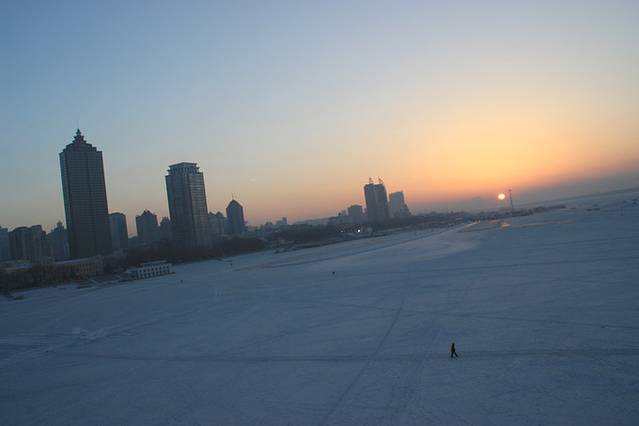 在附近玩到三点多钟,紧接着去了松花江。并不是为了冰面上的活动项目,而是想要上去看日落。