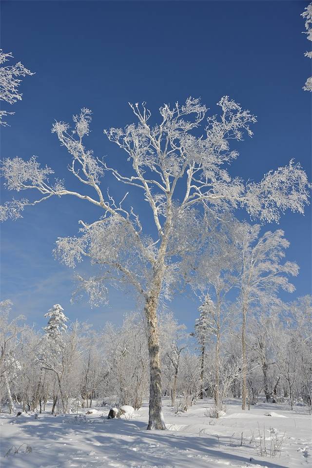 实在是太幸福了啊。这些树上全是雾凇。树的轮廓在雾凇的覆盖下特别清透。原本在雪地里各种想要打卡拍个人写真,但在雾凇岛,实在不舍得人入镜来破坏这种美好了,几乎大多数时间都在拍景色。