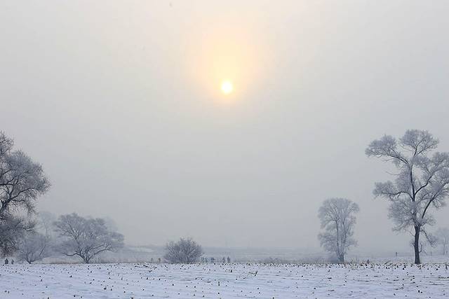 雾凇岛的日出确实好看。、雪地里升起的太阳温暖了大东北。当你缩着脖子出门的时候,阳光照在脸上,刺骨的寒冷里又多了一丝温暖。很是舒适啊。