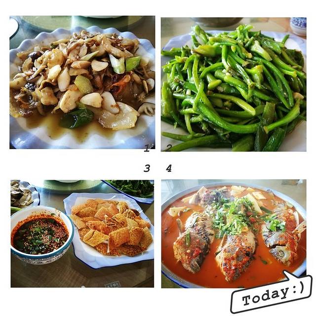 中午在 喜洲 古镇吃的饭,包车师傅胖哥带去的。价格和味道都还行。野生菌炒腊肉+炒水性杨花+白族特色生猪皮+白族的一个什么酸辣鱼。分量依然超级大。我们两男两女,这四个菜依然没吃完 好绝望。