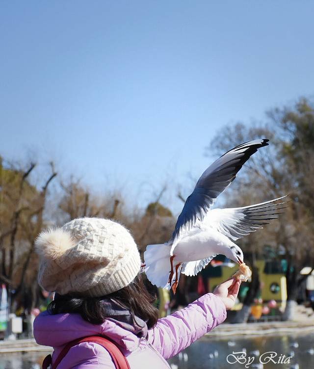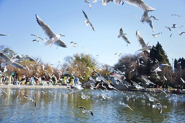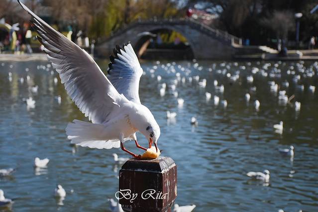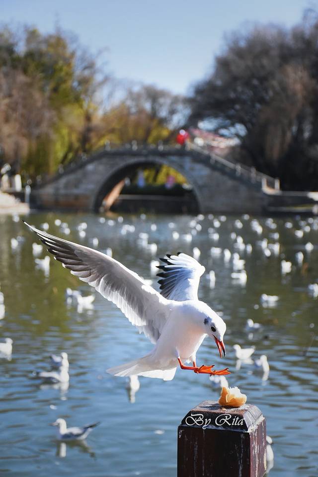 吃完后就近去了大观楼公园看海鸥。这里的海鸥比小普陀的更亲人~~