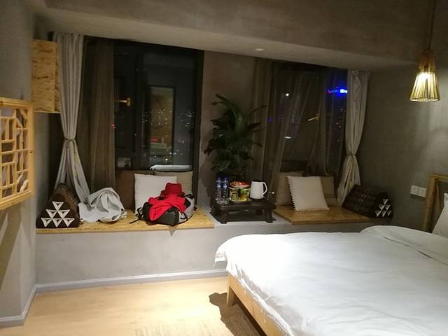 当天住的是 昆明 谷屿酒店,本来定的一个标间,临入住的时候酒店打电话来说很抱歉没有标间了,但是可以给我们开两个大床房或者退款给我们,我一听,好事儿啊!不用加钱住俩大床房,于是欣然同意。酒店知道大敏是孕妇,还特意安排了前台对面的房间,告诉她晚上有什么事就叫她们,服务态度真是非常好了。