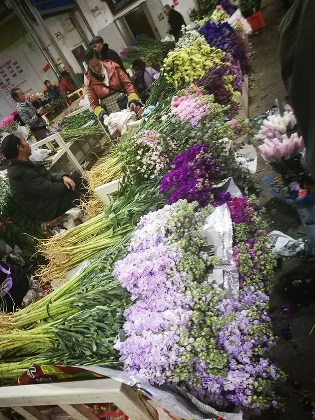 摊了一桌子,又便宜又好看的花,我俩真的抑制不住买买买的心~
