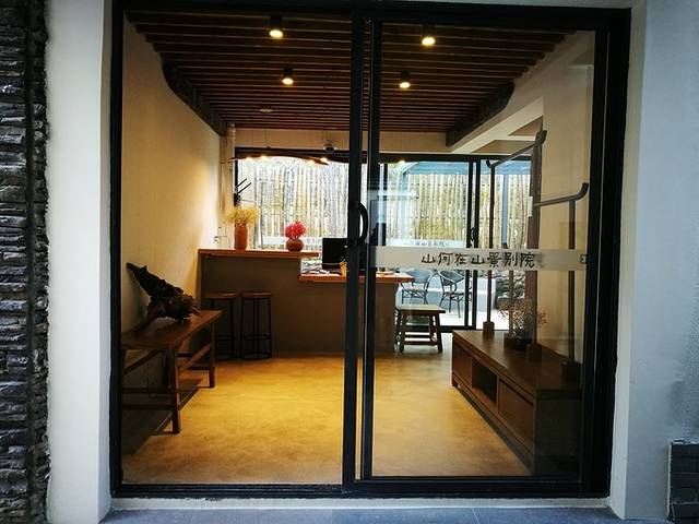 来到山何在。老板娘告诉我们山何在一共是两栋别墅,8个房间。