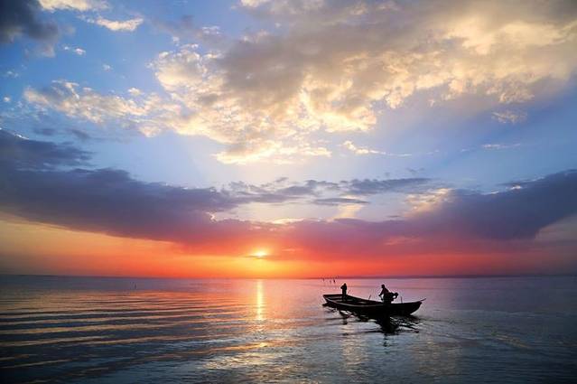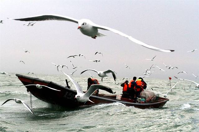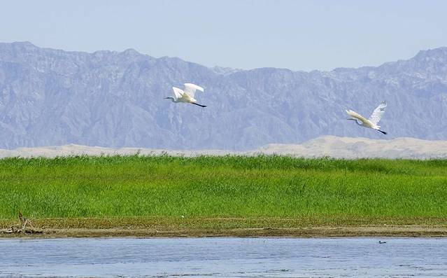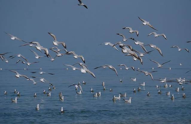 春季,可以在博斯腾湖边静静的欣赏鸟起鸟落。