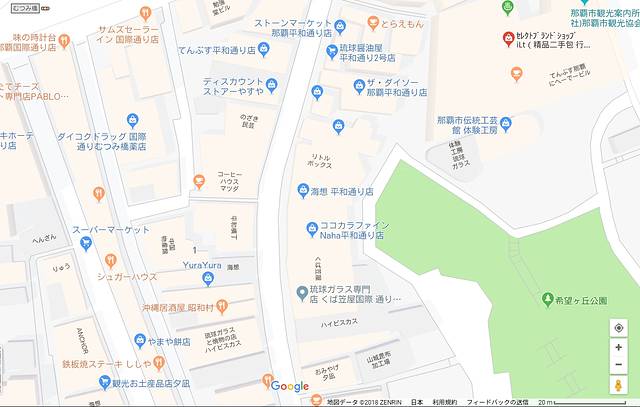 放大之后什么都有吧,那霸观光协会,精品二手包行,传统工坊,琉球酱油屋什么的,能看懂些字,店家都不少吧。再看看知念岬公园的地图,同尺寸的。