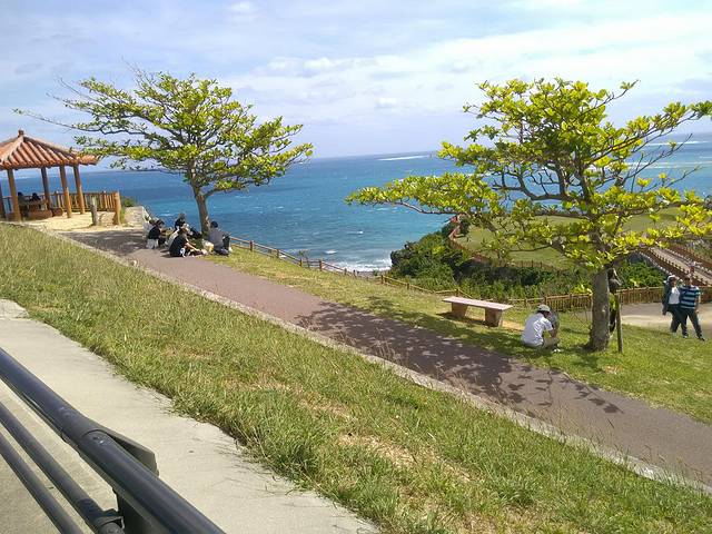就这么几个人,主要是中国团不走这里。经常听说冲绳的万座毛吧,去那真不如来这里,个人感觉是这里要胜出好几头。当时的天气是有时阴有时晴,不会拍照的我用手机拍的。经常听说人好看怎么拍都好看,今天我还懂了景好看谁拍都好看。(笑)
