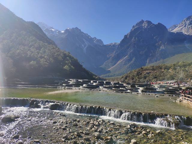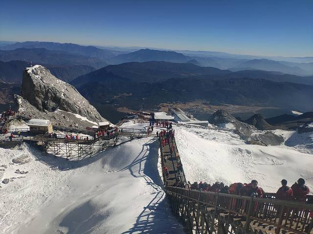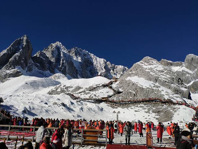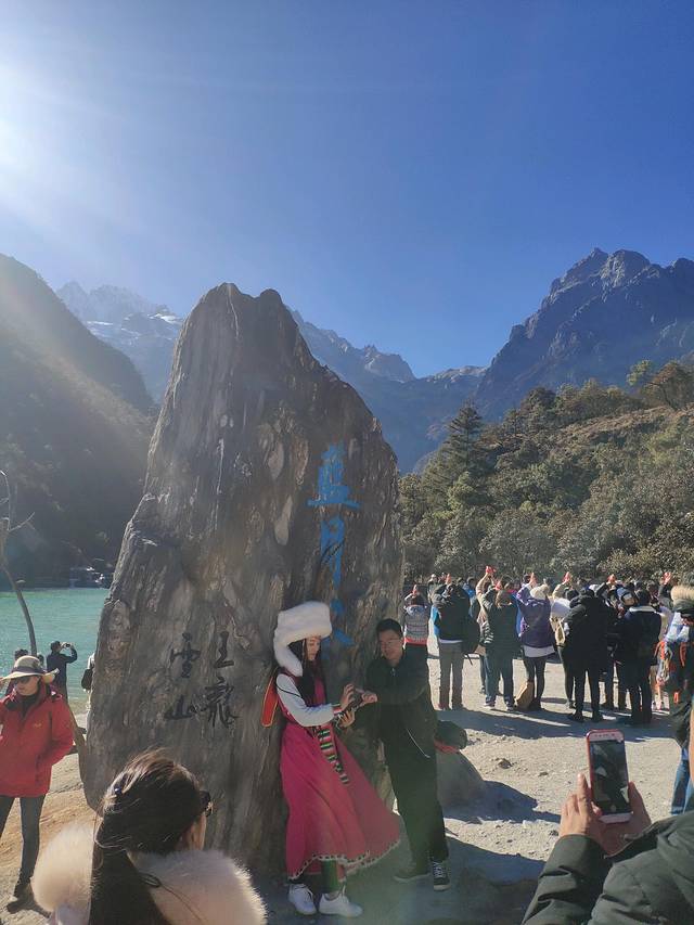 到了玉龙雪山,助理会先集中大家,说下今天的计划安排,像我们买的是豪华产品,全部东西都包含的。所以就会变得有点紧凑了。我们先是乘坐大索道去到玉龙雪山海拔4506,进去乘坐索道前会让大家把打火机上缴,抽烟的伙伴们千万别上当,不用上缴直接走过去就行。到了4506就开始爬山了,大概游玩2小时,尽量12点半前下山,然后就回到出发的地方吃午餐,吃完午餐,就走过去对面看《印象丽江》,表演1点30开始,大概1小时,2点35左右结束。看完表演就返回吃午饭的地方,乘坐车去蓝月谷。到了那个点之后需要步行一段距离才到蓝月谷,这个到时助理会拉进群,告诉你路线怎么走的。按照路线去到蓝月谷的中游,接着往下游走,就会有环保车乘车点,4点左右就乘坐车返回停车场找到大巴车就可以了。助理所说的是5点集中。