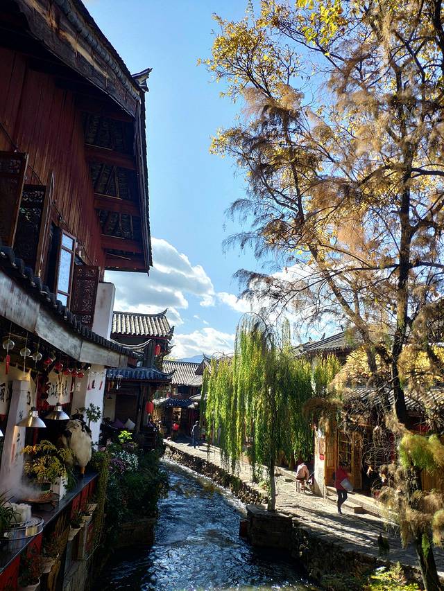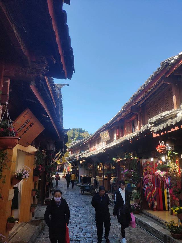 早上5点多就起床,乘坐早上7点30昆明飞丽江的航班。9点多就可以到丽江了,乘坐丽江机场的大巴前往蓝天宾馆下车(大概60分钟车程),然后步行前往丽江古城(大概15分钟路程),游客中心可以寄存行李,寄存好行李就逛下丽江古城。大概下午2点左右就前往束河古镇(可以选择坐公交6路或者打滴滴去,这次我们选择打滴滴过去,费用40左右,大概45分钟),到了束河古镇,先去客栈放好行李,然后就逛古镇找吃的了,晚上住在束河古镇