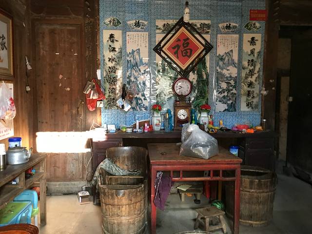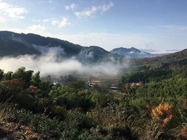 上午从宏村包车去黟县泗溪,走Y102和X030道路,单程20公里左右,八人包车费往返150元。今天是个多云的晴天,蓝天白云终于出现了。路上在一个观景台下车,看到了云雾弥散的景色。世界遗产地宏村的山那边,黟县泗溪——绿溪氧吧、土楼部落、香榧之乡。一条称“甲溪”的小河长约12公里,由北而南,流经泗溪乡。清澈见底的潺潺溪水,是村民的天然饮用水和生活用水。泗溪村的森林覆盖率达98%以上,一座天然氧吧。在泗溪的历舍,仅有百余人口的历舍村,拥有二、三十幢六、七十年代建造的土墙房,依山傍水的一幢幢黄泥墙土楼上,竖有高耸的马头墙。体现徽派建筑元素的精华。当地人朴实好客,我们还在一村民家中喝了茶。泗溪乡以全国正宗香榧产地而远近闻名。作为地球上最古老的植物之一,它壳薄、肉满、香脆可口,深受欢迎。香榧仁肉有丰富的脂肪、蛋白质、糖份及碳水化合物,并含有多种维生素和不饱和脂肪酸,有极高的营养价值。食用后对化痰、止咳、润肺、通便、驱虫、强身,都有奇特的疗效,是不可多得的坚果。