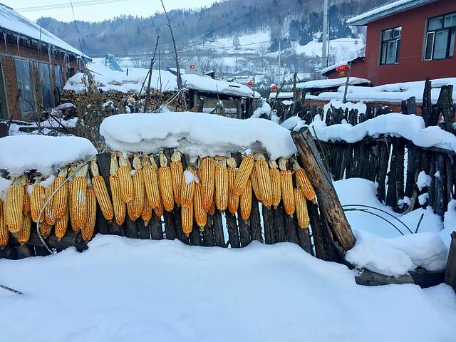 早起的人有虫吃,早上起来后,晚上下雪了,把村子又重新穿上了衣服,拍摄美美的照片。