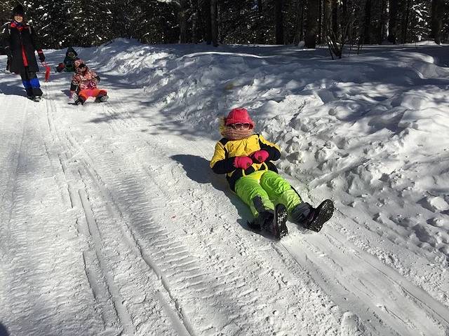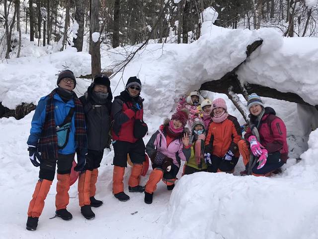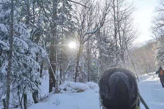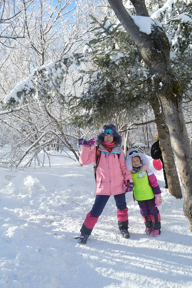 开始10公里的徒步,本来还觉得挺可怕,疯了吗我要走这么久平时都不会这么走的,但是现在想想轻松加愉快,因为不徒步就看不到山上的大雪,不徒步就感受不到林海雪原,而且娃也觉得徒步最好玩,因为下山可以滑下去哦。