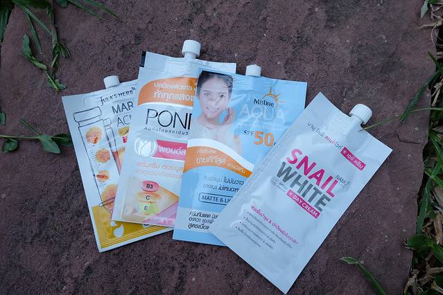 这款应该是小仙女超喜欢的伴手礼啦~ 这些是泰国超火的护肤品,包装小小的!可以随身随地带着,711便利店和美妆店都有卖,价格也不贵哦~ 有还多功效任你选择,菊花精华、西瓜精华、龙眼精华都有,我不知道效果好不好,但看起来好可爱就买了很多啦~ 哈哈哈。