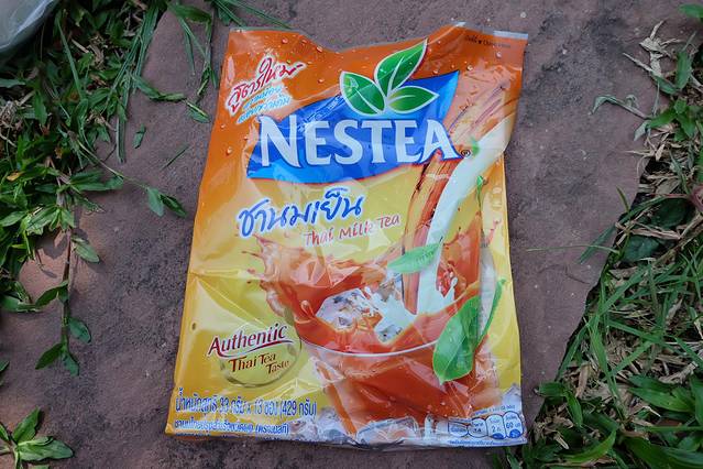 泰式奶茶真好喝!我平时在国内经常和热茶,但是泰国最流行的饮料是泰式奶茶~ 橙色奶茶,一看就流口水啦。加点冰块更好喝!天气热热的必喝冻冻的泰式奶茶~ 我还买了三合一泰式奶茶,只加入热水泡一下就能喝了,很方便,味道跟在泰国喝的差不多。