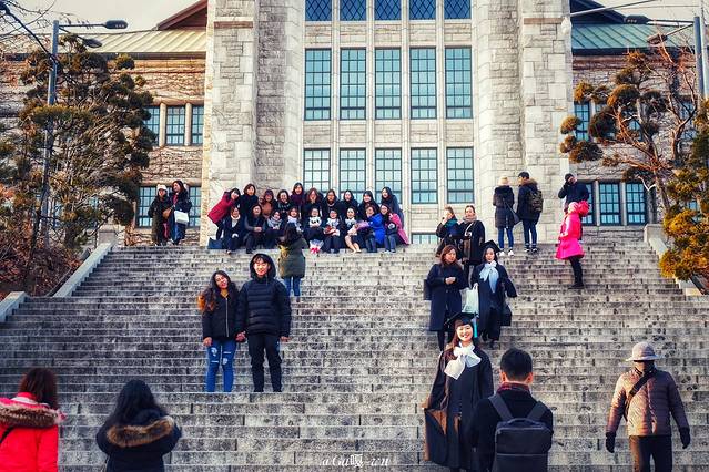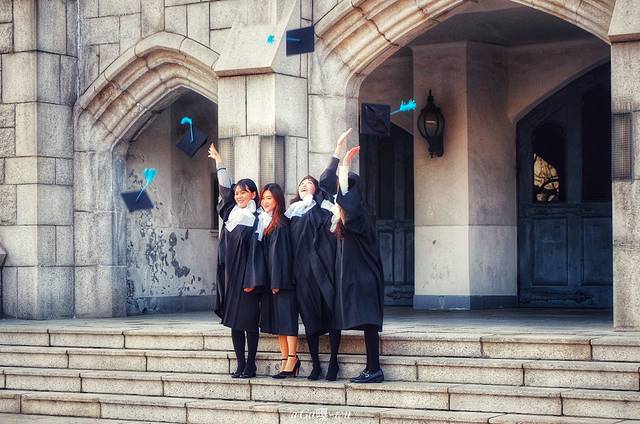 刚好还遇见了毕业季的她们,在拍毕业照!为梨大增添了一道亮丽的风景